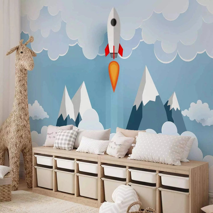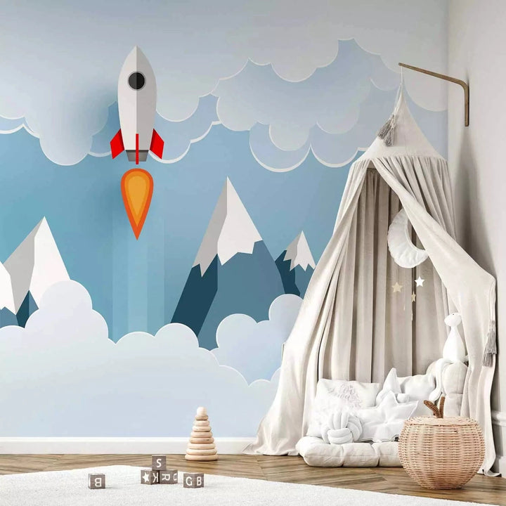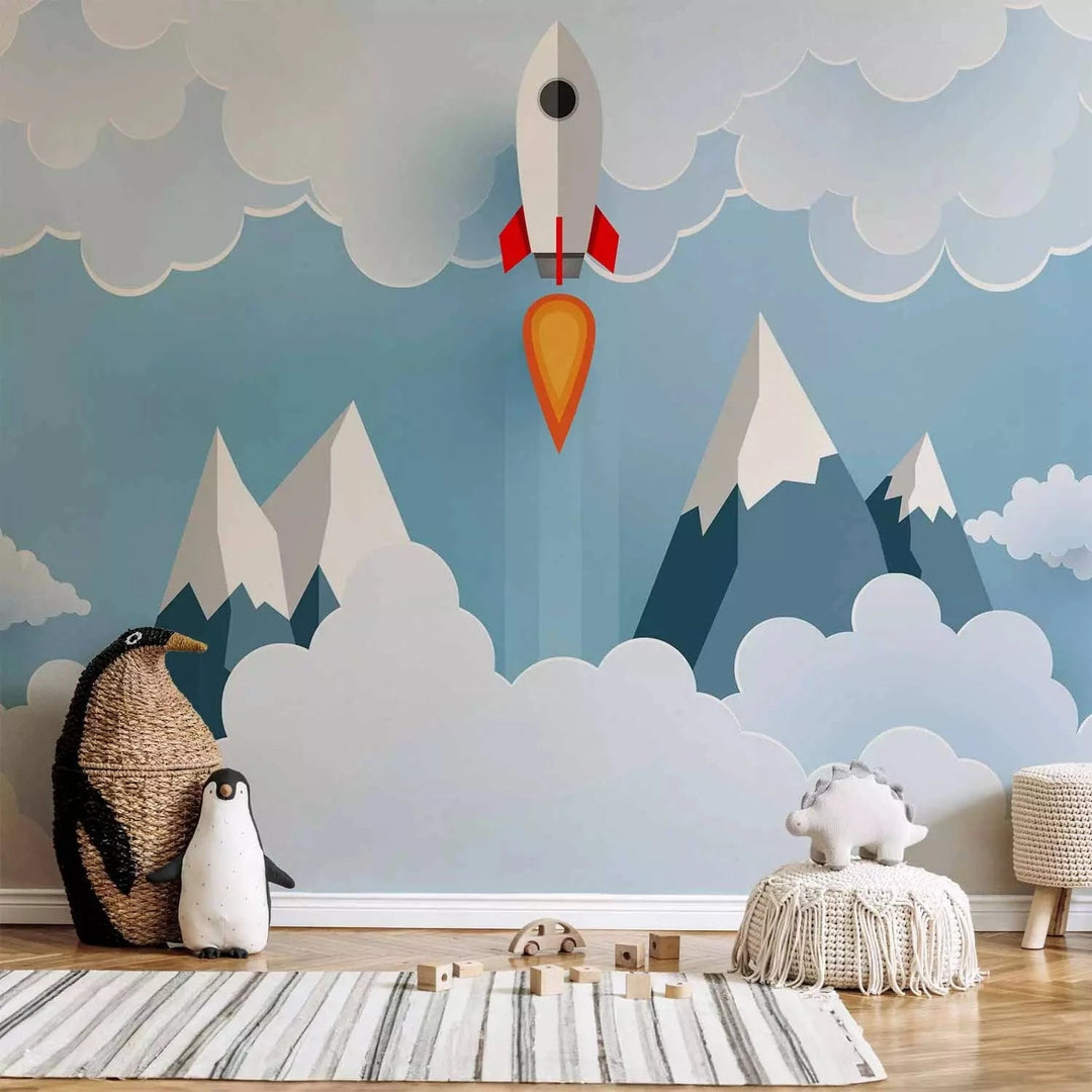 Valokuvatapetti pojalle, lastenhuoneeseen sinisin sävyin - Rocket, 118591