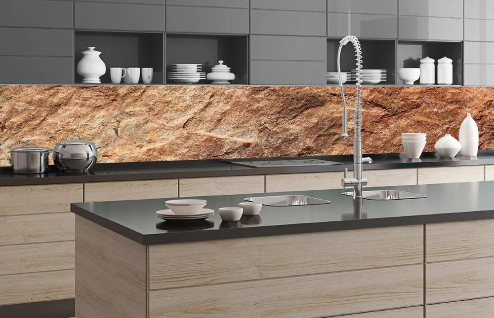 Jaunākās virtuves dizaina tendences pievērš uzmanību pašlīmējošām foto tapetēm virtuves aizmugurējai sienai. Tā vietā, lai noklātu virtuves aizmugurējo sienu ar flīzēm, to var noklāt ar plēvi.