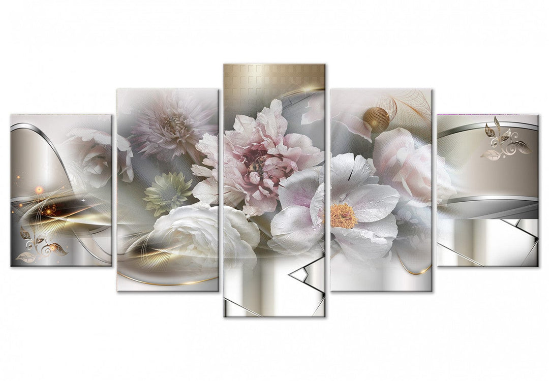 Canvas-taulut - Abstraktio kukkien kanssa - kevätkukkia kultaisilla elementeillä