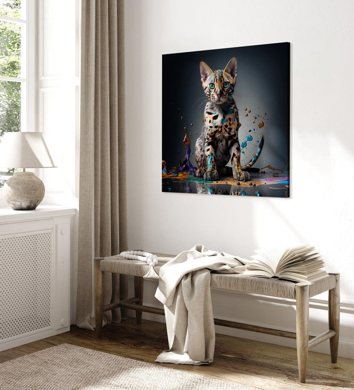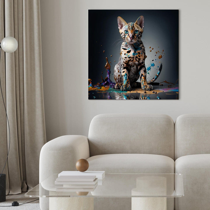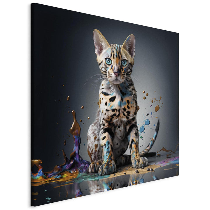 Canvas-taulut - Bengalin kissa värikkäässä lätäkössä, 150233 🎨🐾