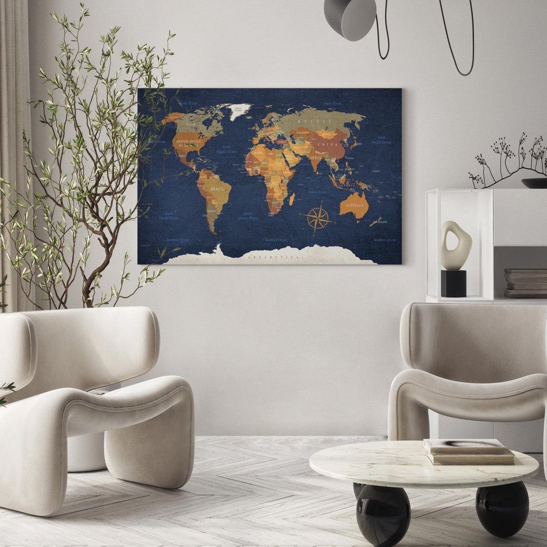 Canvas-taulut Maailmankartta: Musteiden valtameret