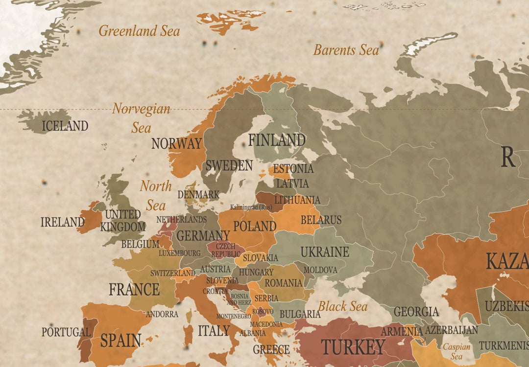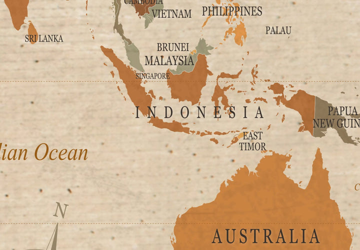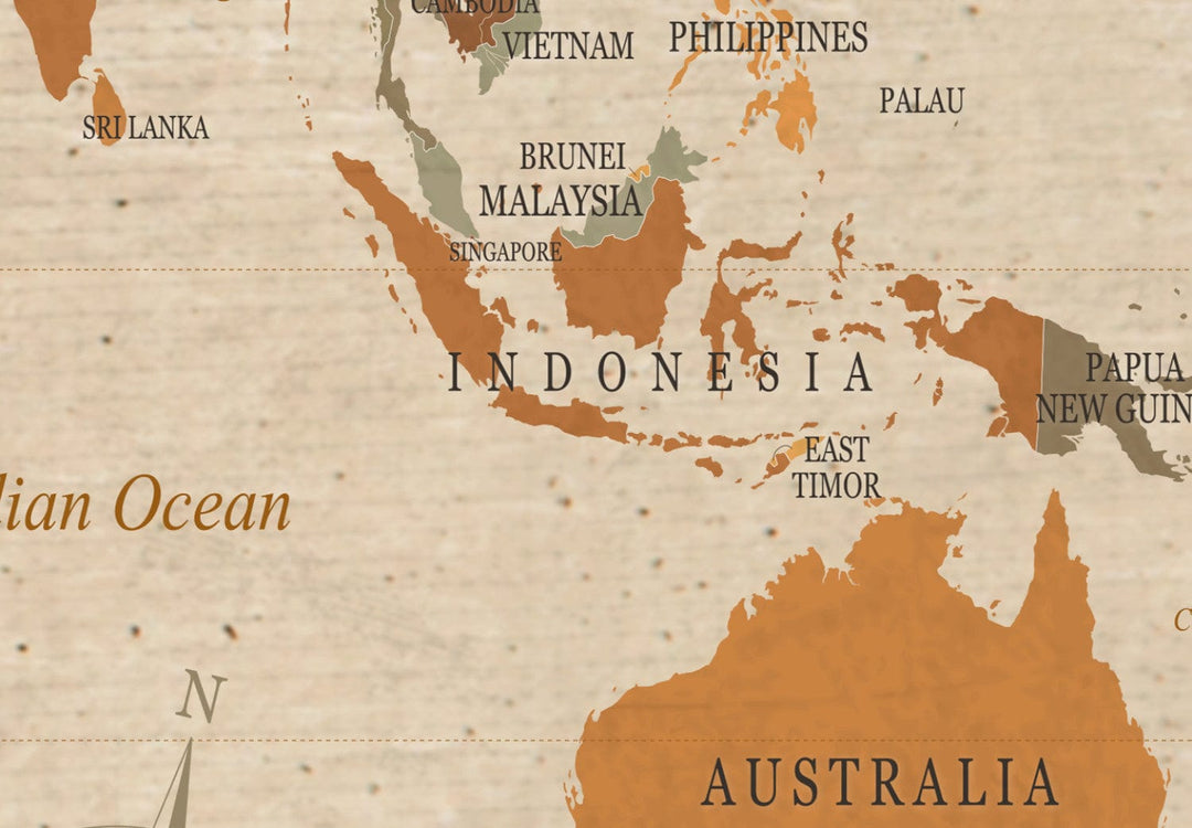 Suurikokoinen maalaus - Maailmankartta: Beige chic, 151915, koko XXL