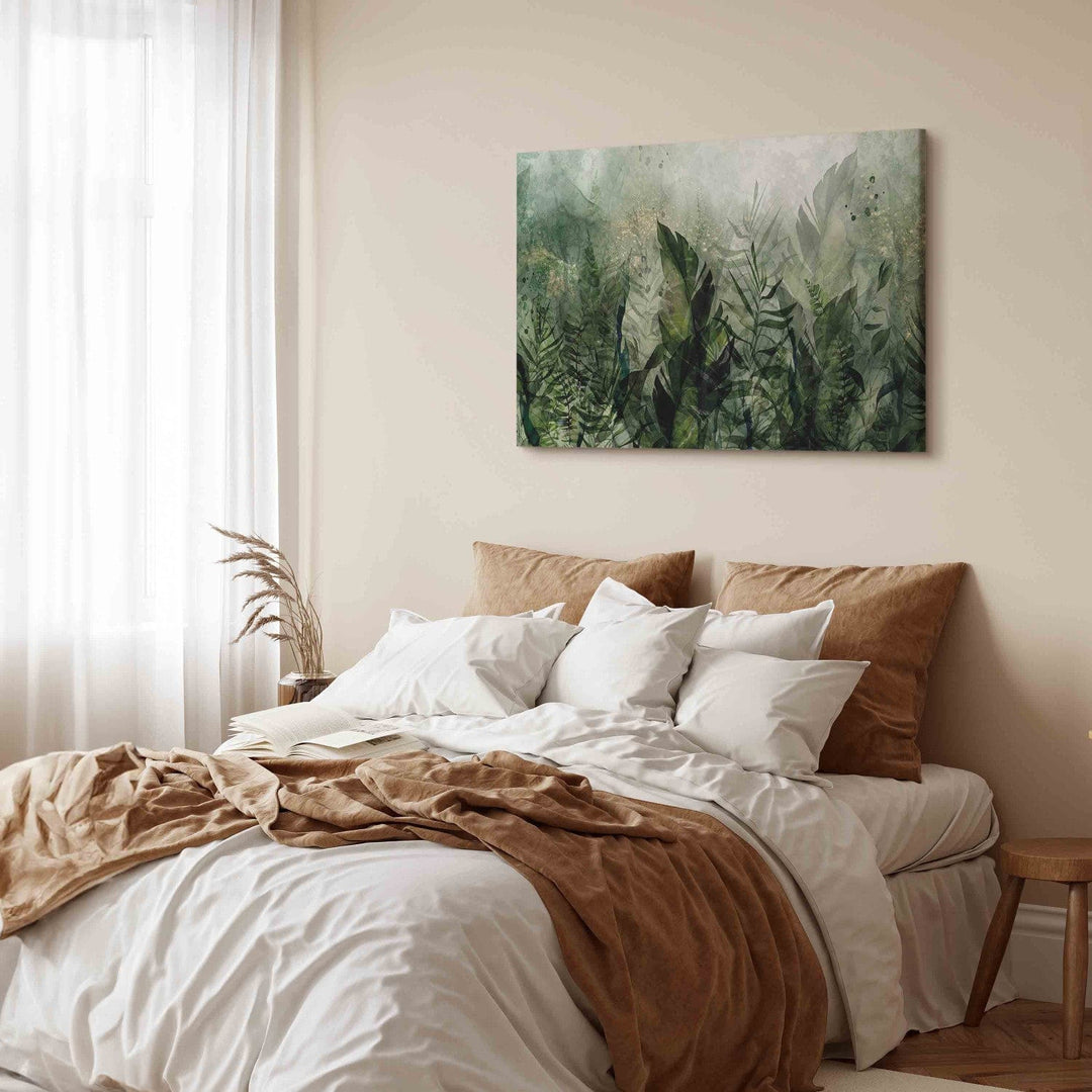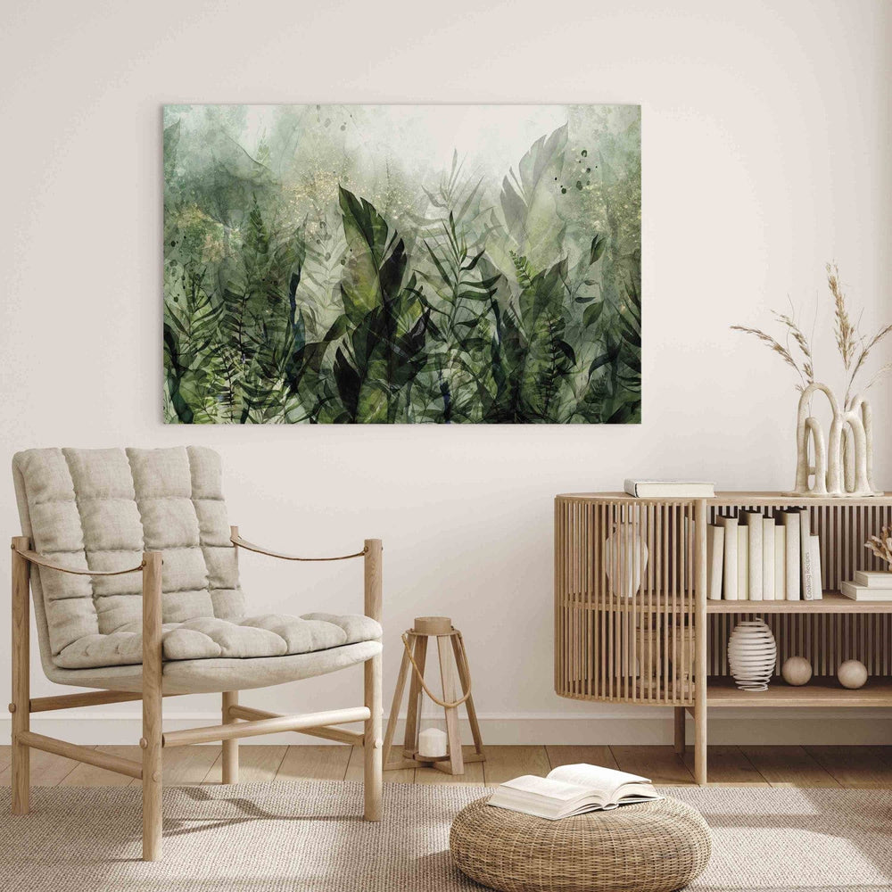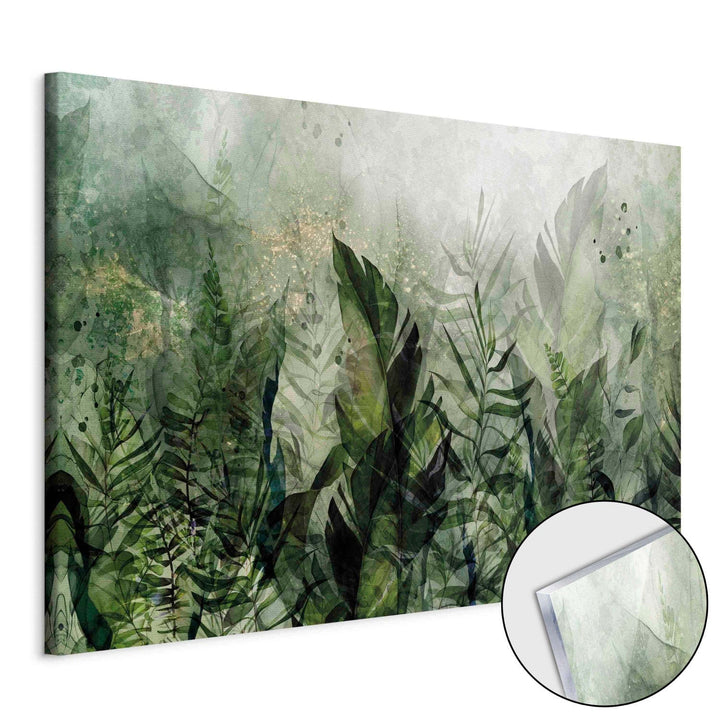 Maalaus akryylilasille - Aamukaste - sommitelma lehtien kanssa vihreällä taustalla, 151497