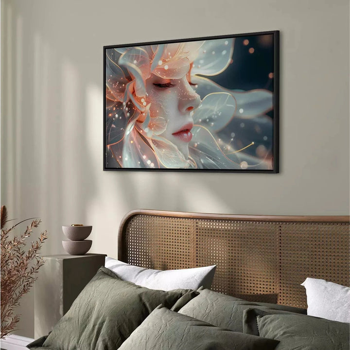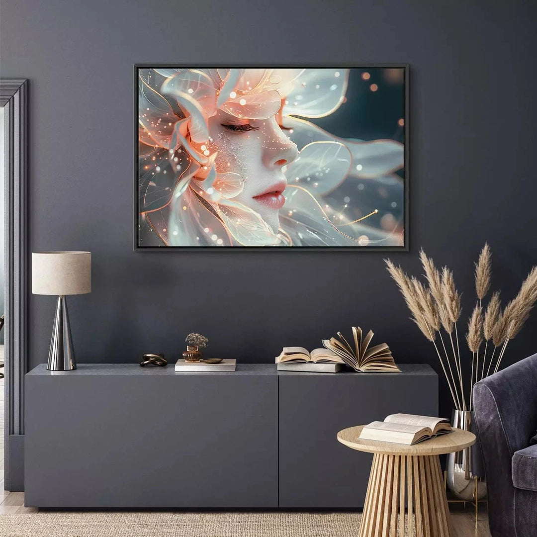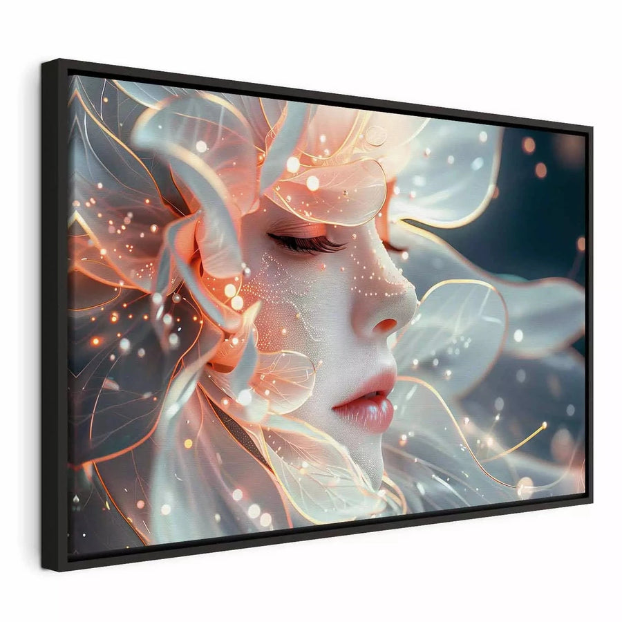 Maalaus mustassa puukehyksessä glamour-tyyliin - Kukkiva muotokuva, 161976