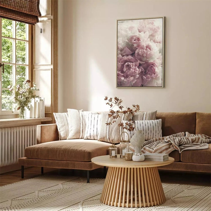 Maalaus puukehyksessä (luonnonväri) - Herkät pionit, 125744