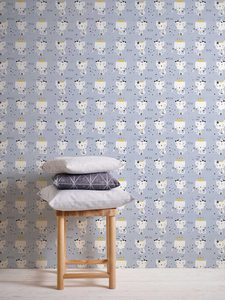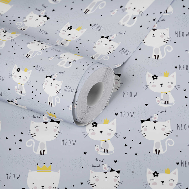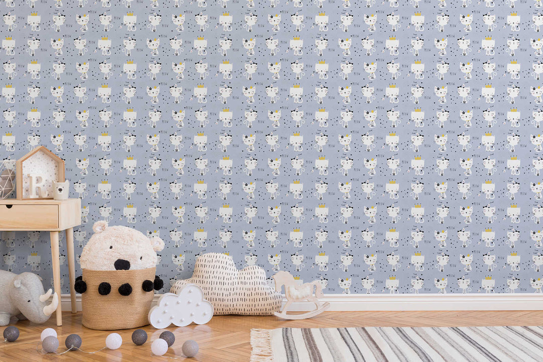 Lastenhuoneen tapetti kissa-aiheella - harmaa, 1350577, Ilman PVC:tä 🌿