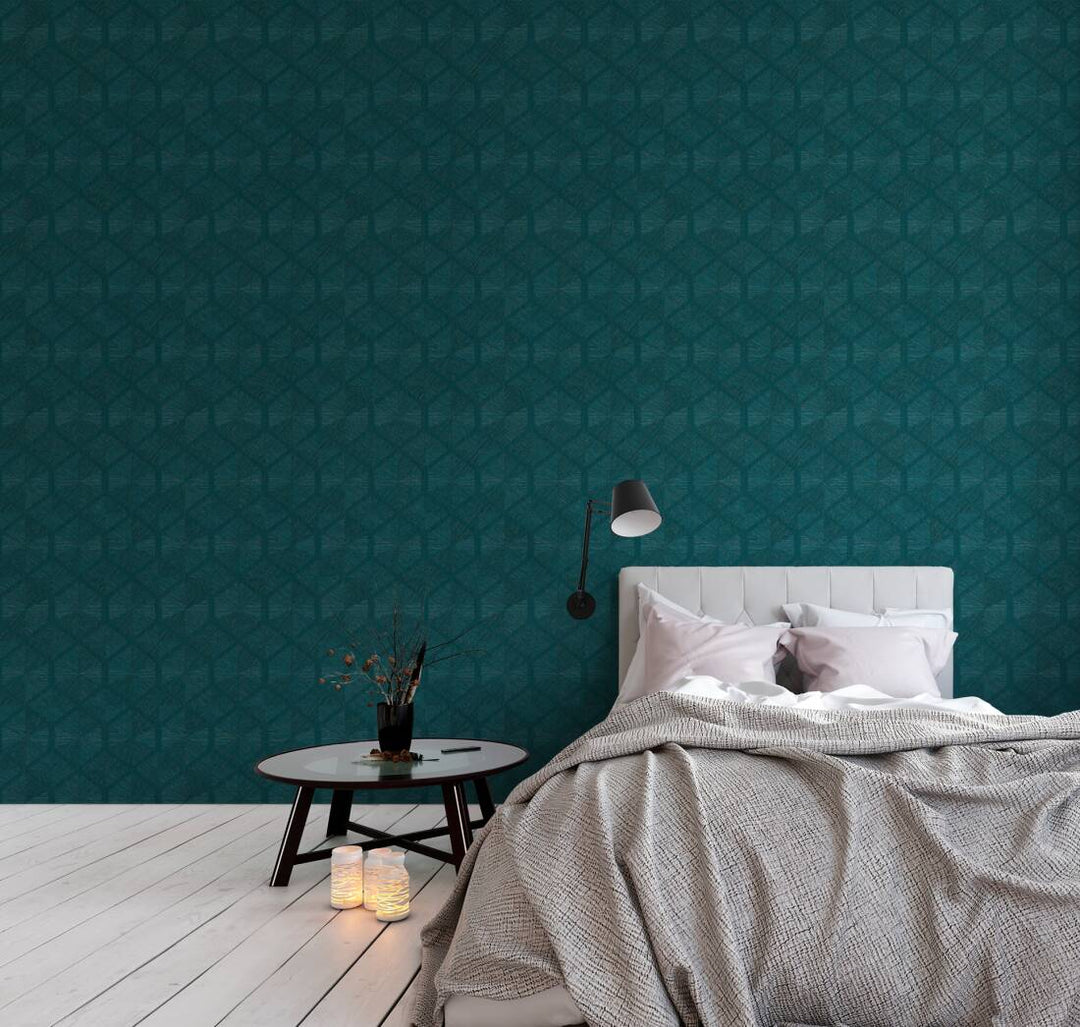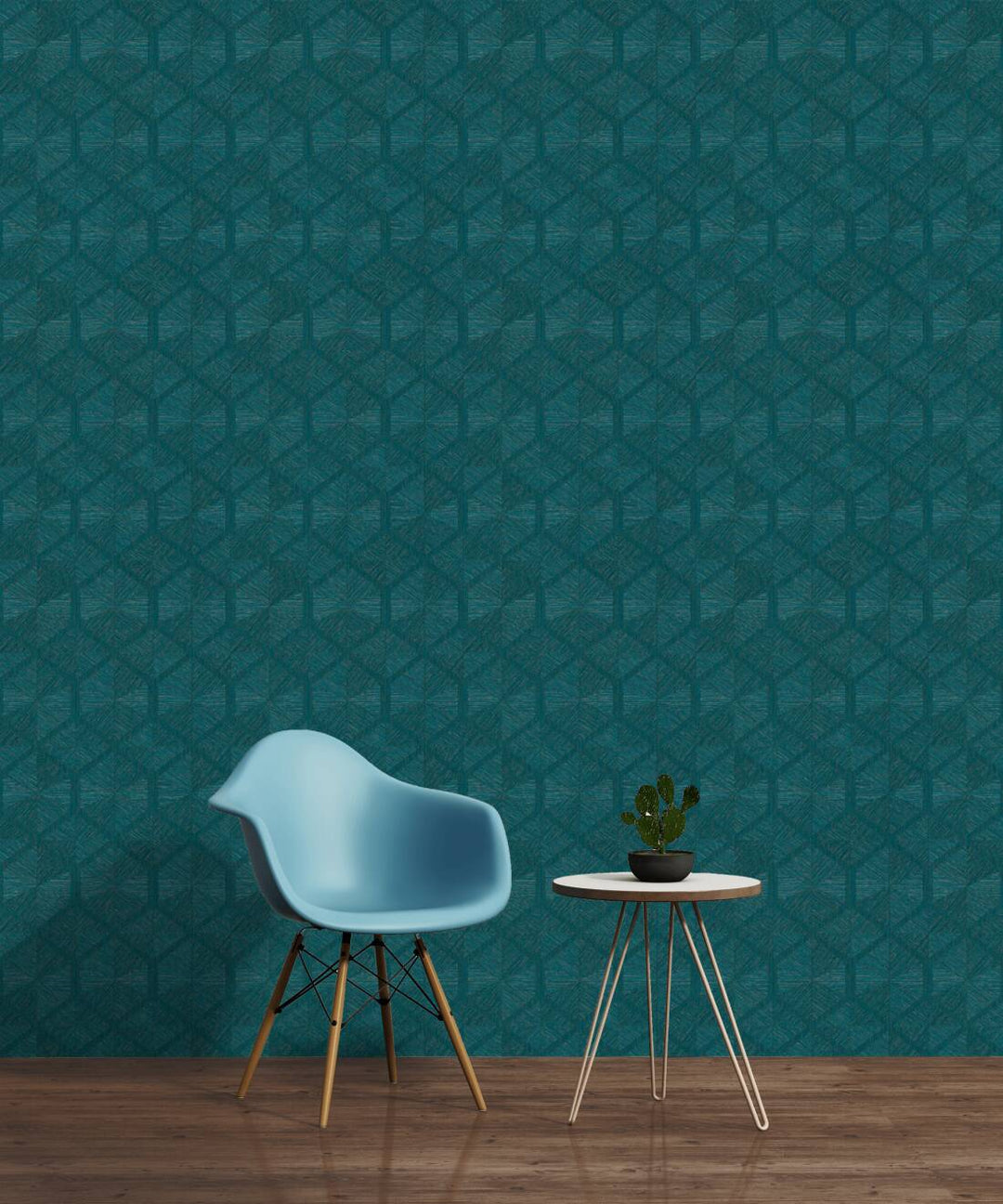 Tässä silmiinpistävässä keskiyönsinisessä tapetissa on kiehtova graafinen kuvio, joka tuo modernia hienostuneisuutta mihin tahansa sisustukseen. Sen kiiltävä, kuvioitu pinta luo dynaamisen valon ja varjon vuorovaikutuksen, joka lisää seiniin syvyyttä ja vetovoimaa.