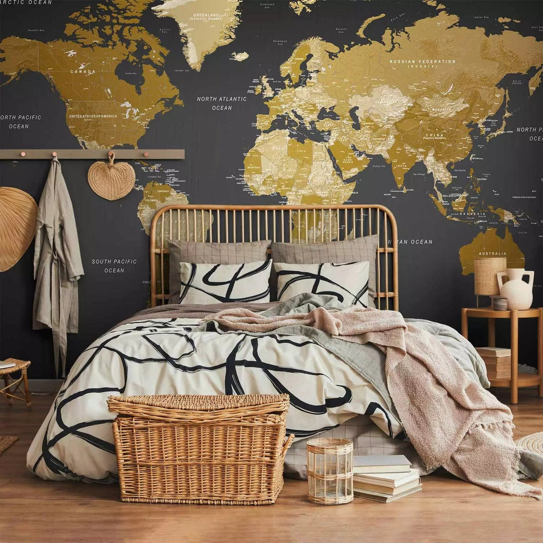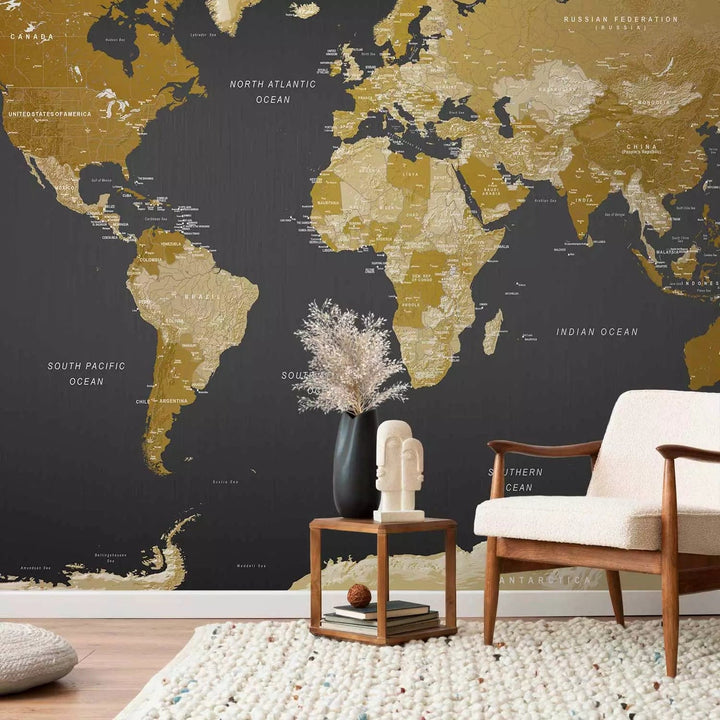 Valokuvatapetti - Kultaisenruskea maailmankartta - Moderni maantiede, 94379