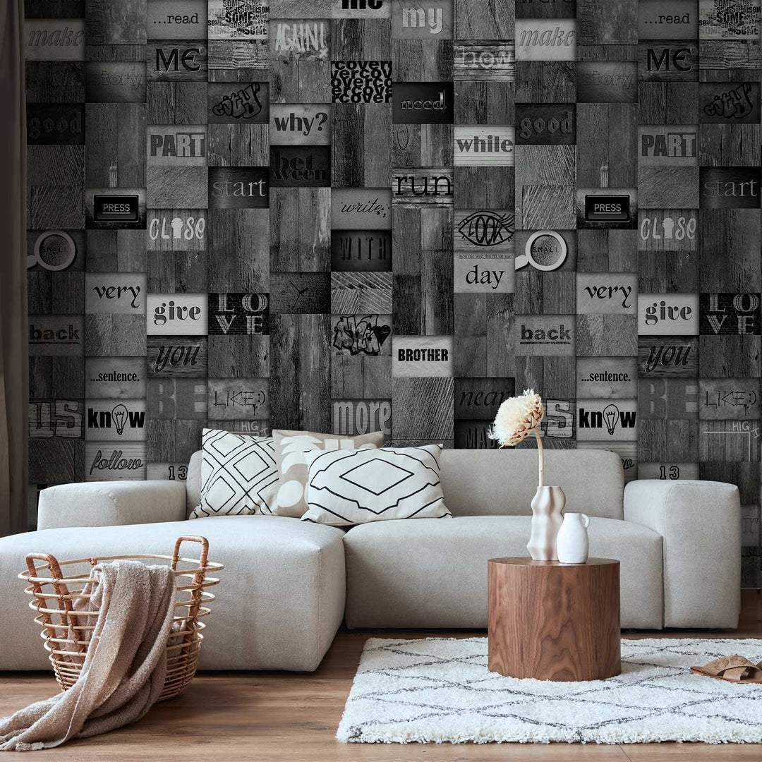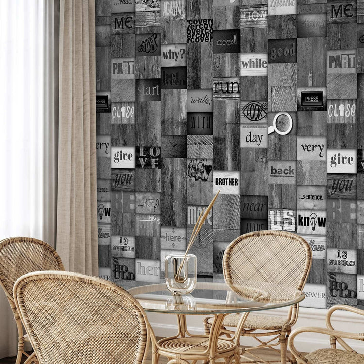 Valokuvatapetti kirjoitukset puuhun (musta), 89719