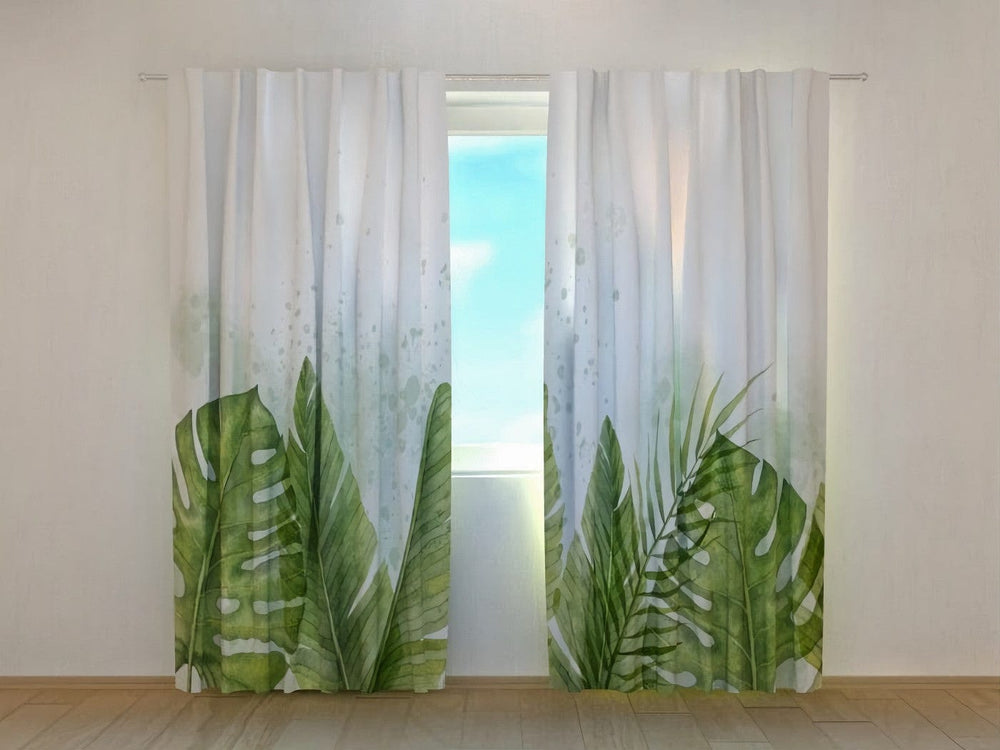 Päivä- ja yöverhot - Eksoottiset vihreät palmunlehdet