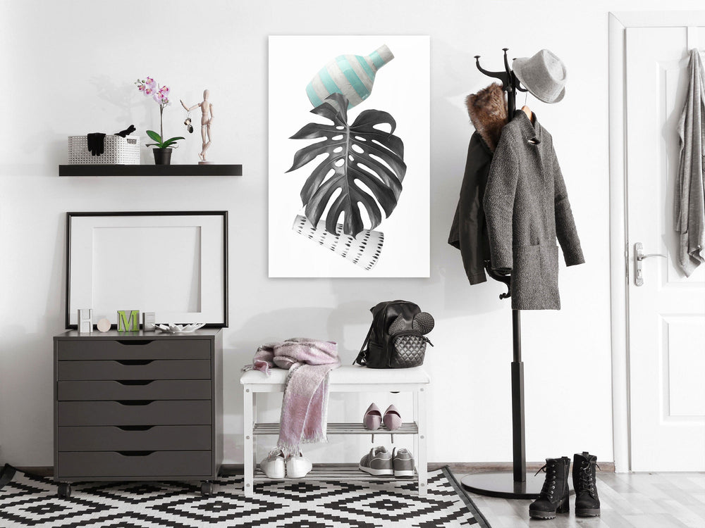 Tapetit eksoottisilla lehdillä: mustavalkoinen, 1402145