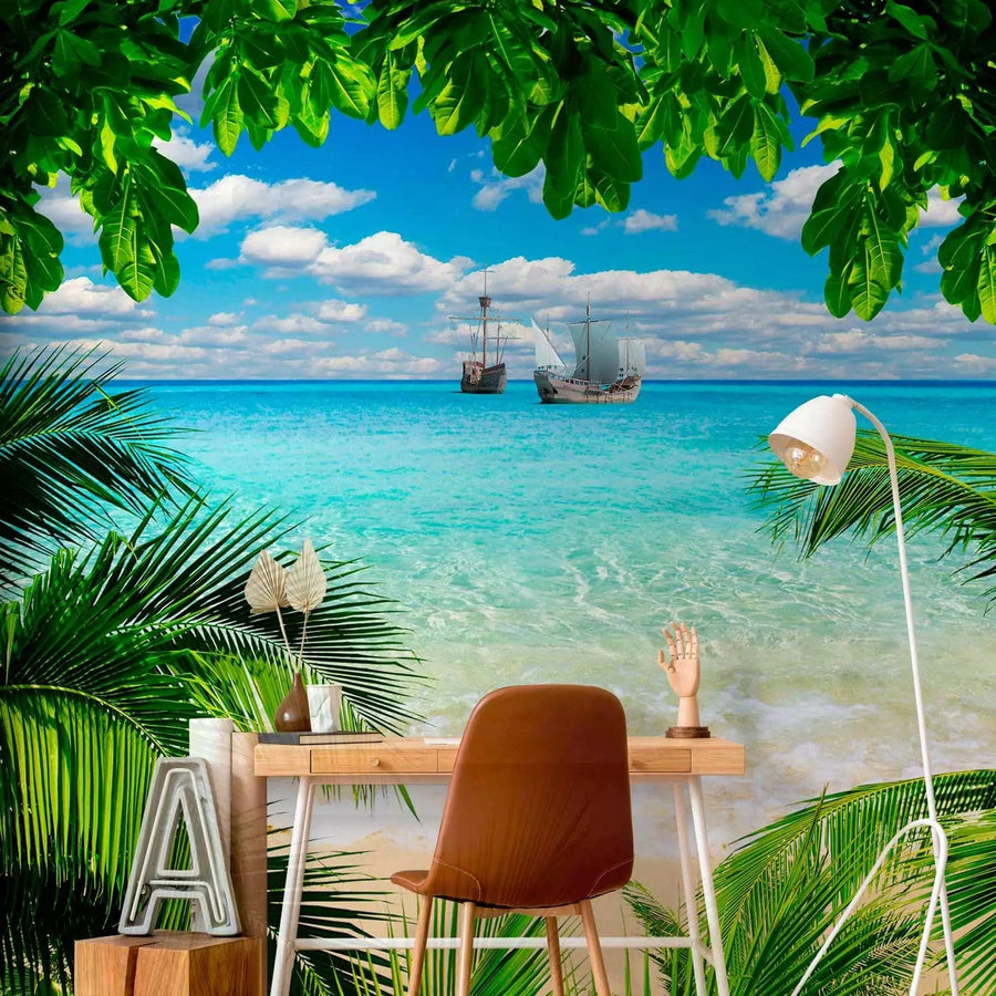 Fototapetes - ainava ar tirkīza jūru un akmeņainu pludmali, 92589  G-ART