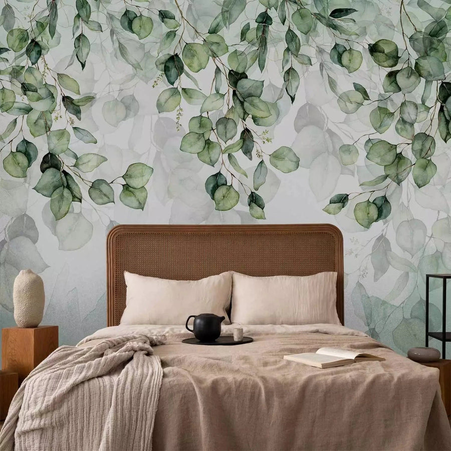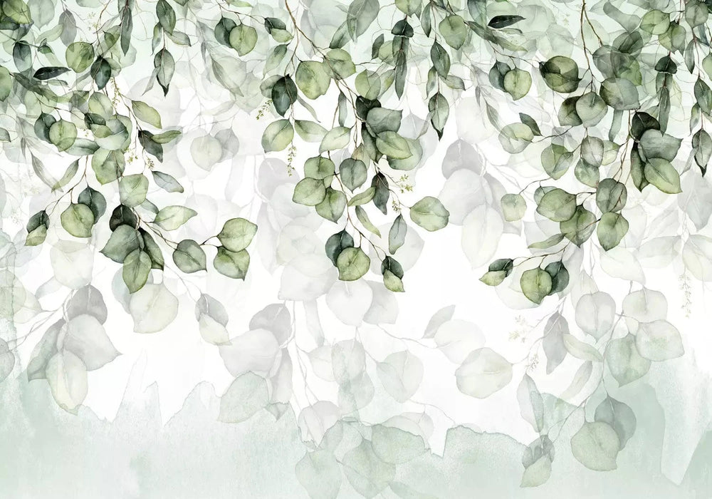 Valokuvatapetti vihreillä lehdillä valkoisella taustalla - Vaaleus - 135388