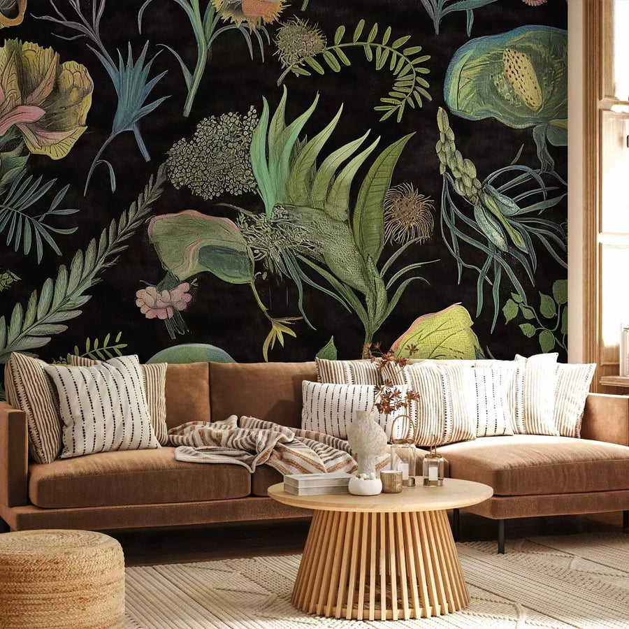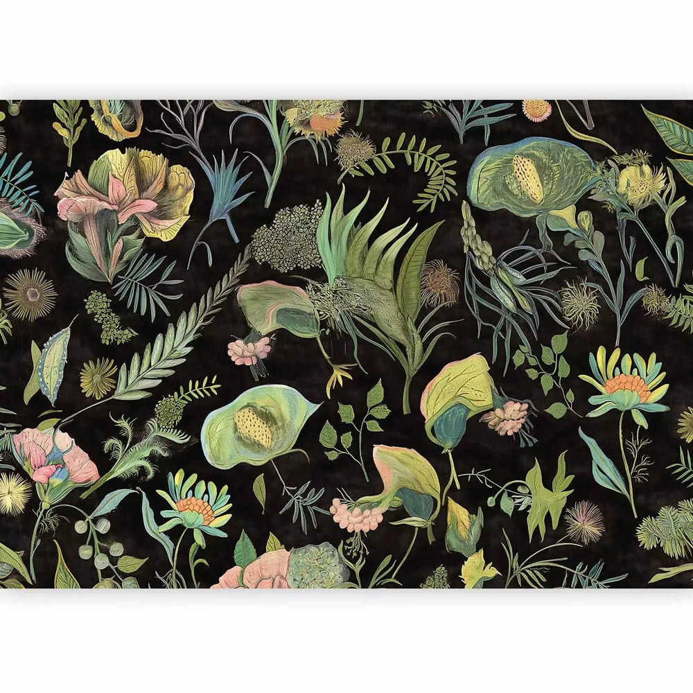 Valokuvatapetti - kasveja tummalla taustalla hienoja yksityiskohtia, 160405