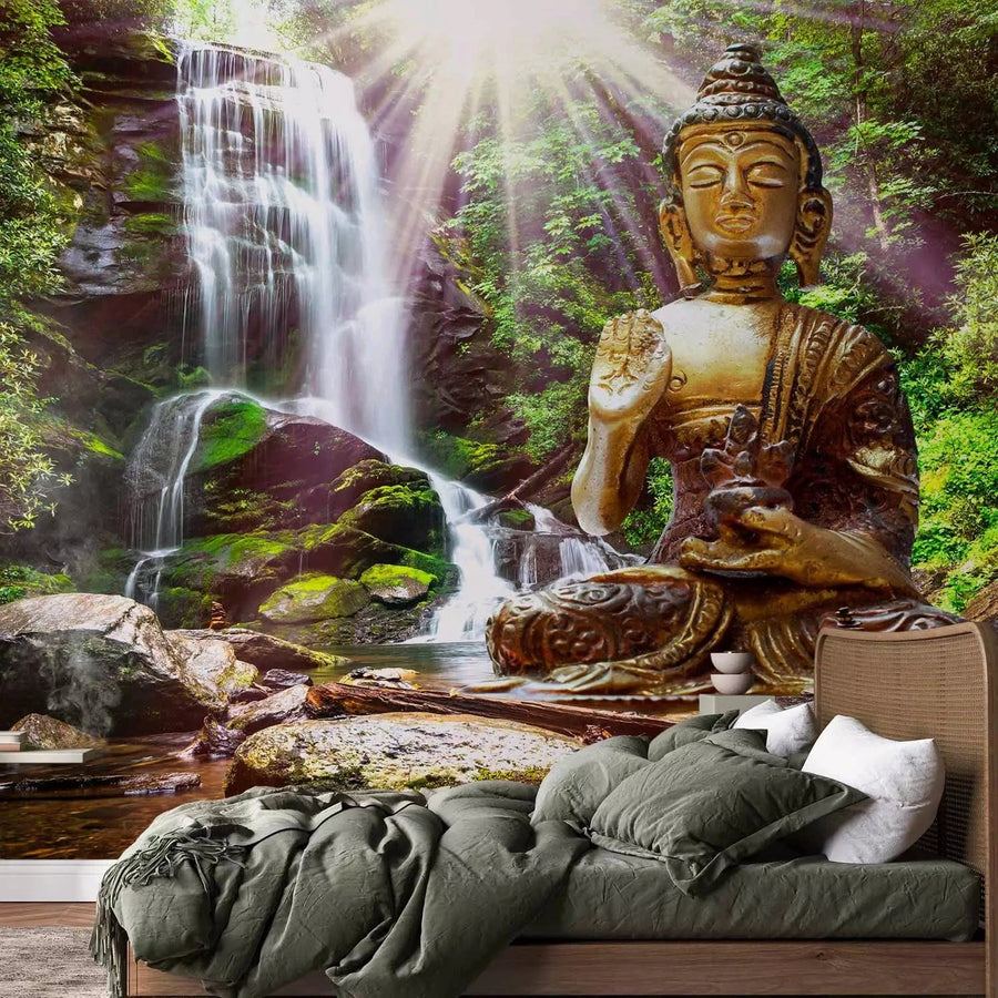 Valokuvatapetti - Buddha veistos vesiputouksen taustalla, 89418