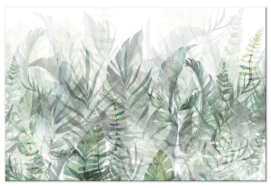 XXL-maalaus - Villi niitty - vihreät lehdet valkoisella pohjalla, 151516