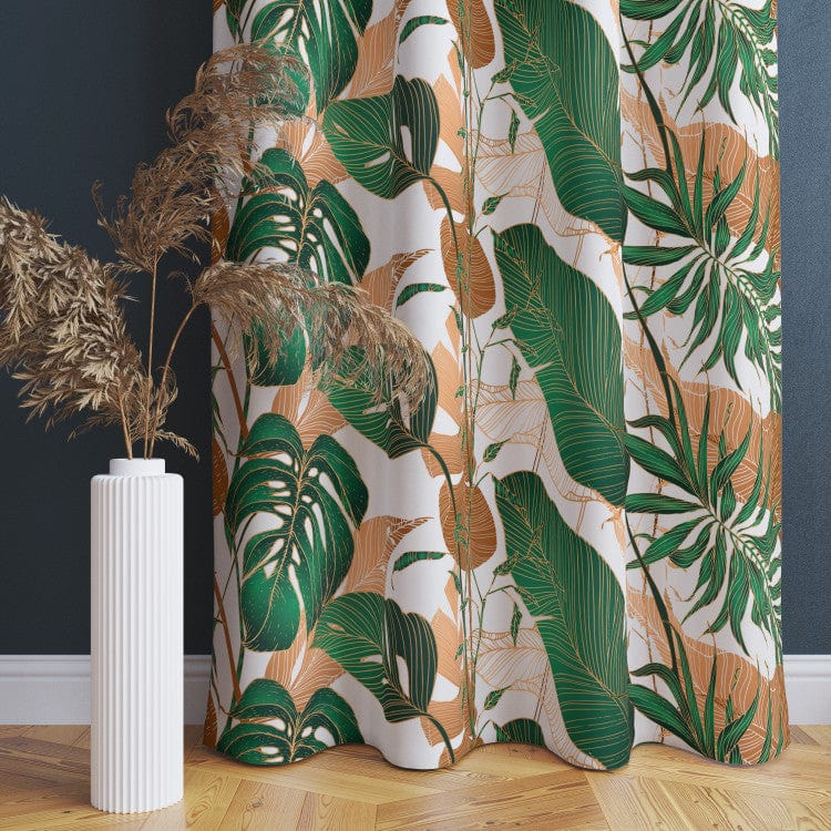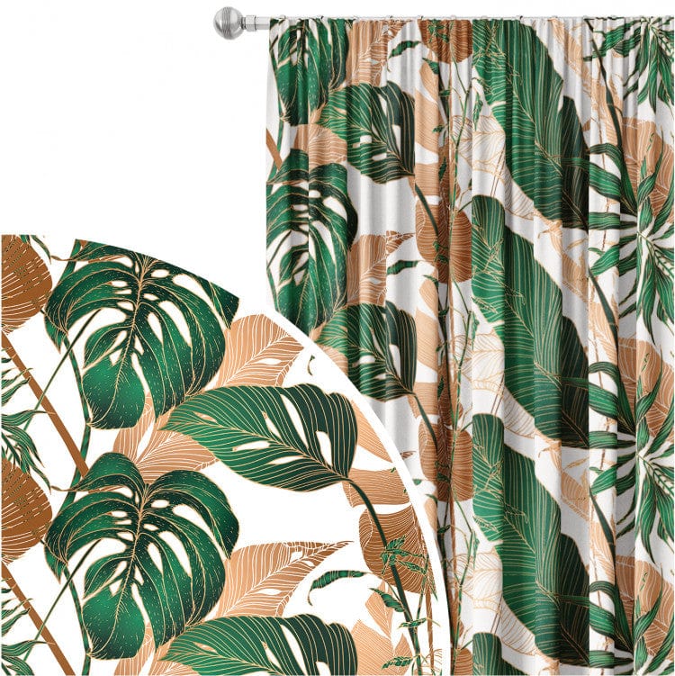 Koristeelliset verhot - kasvitieteellinen sommitelma vihreällä ja ruskealla, 147671