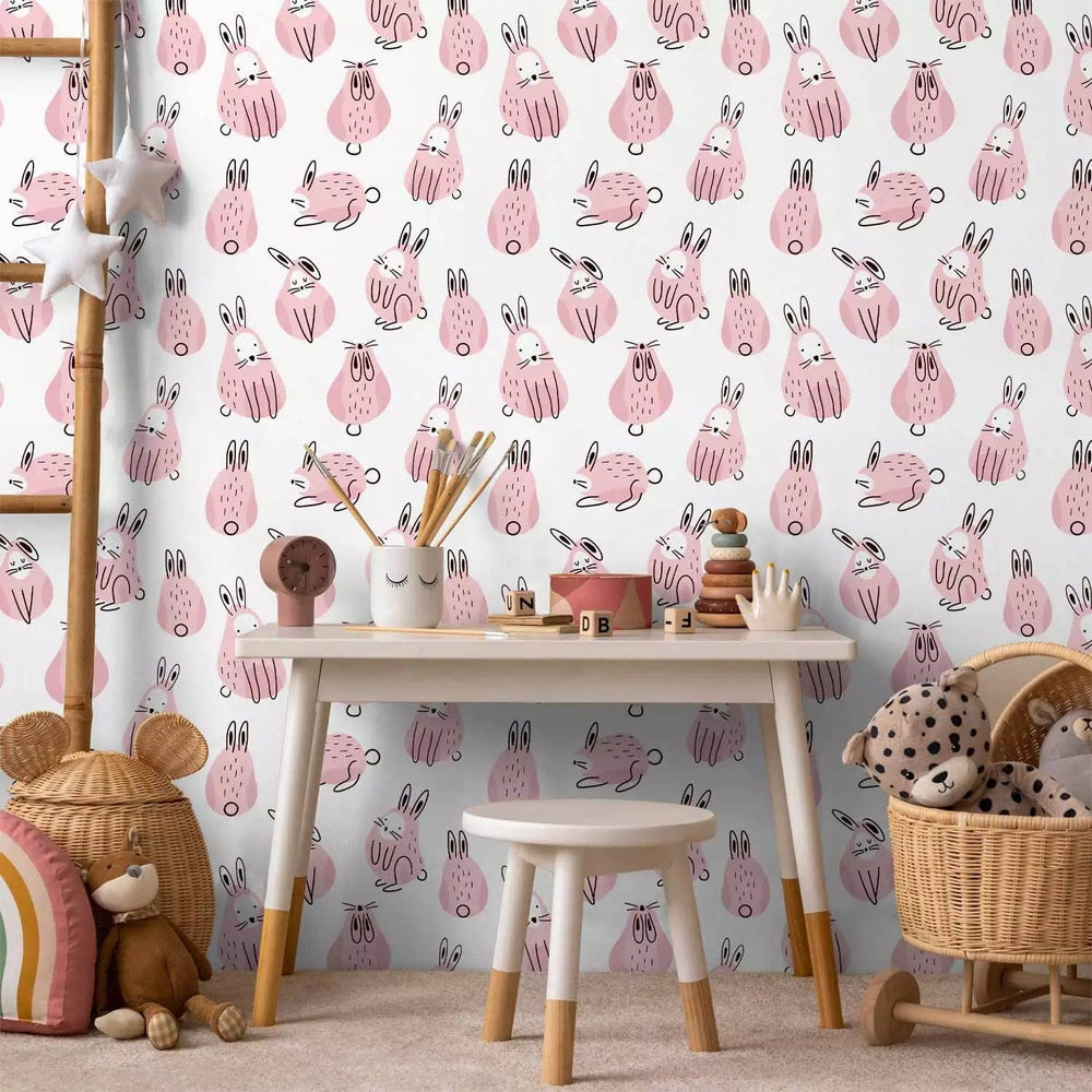Tapetes bērnu istabai - Pūkainie truši, rozā krāsā, meitenēm G ART