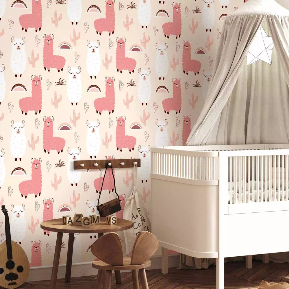 Tapetti lastenhuoneeseen - Hymyilevät laamat, 127183, (0,5x10m)