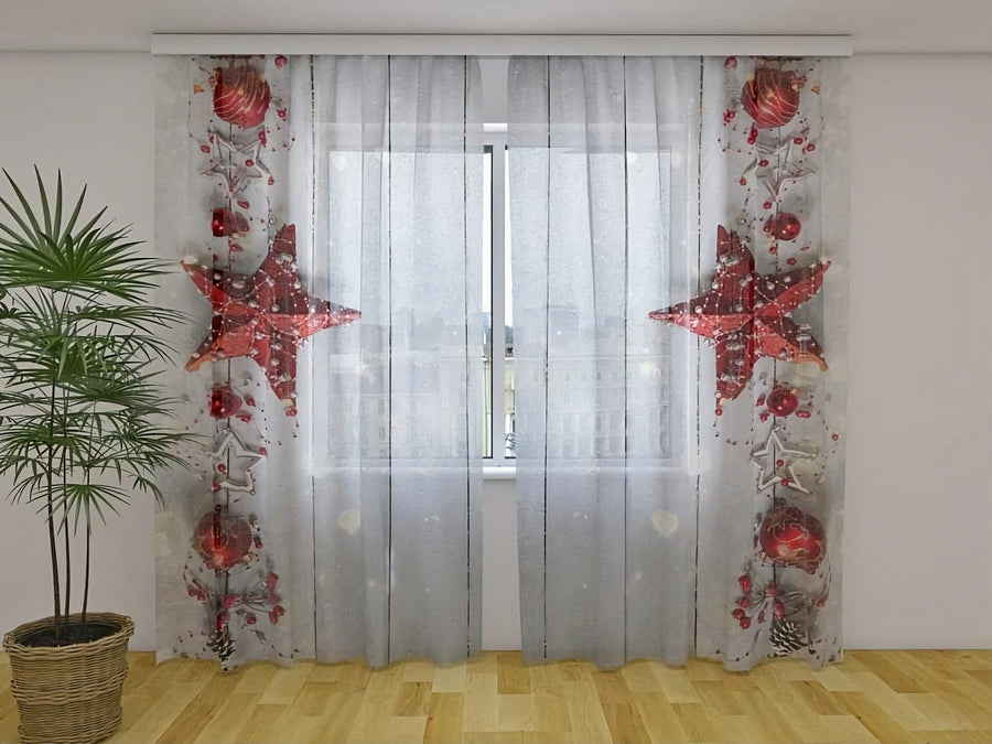 Ziemassvētku aizkari - rotāti ar košām sarkanām zvaigznēm  Tapetenshop.lv