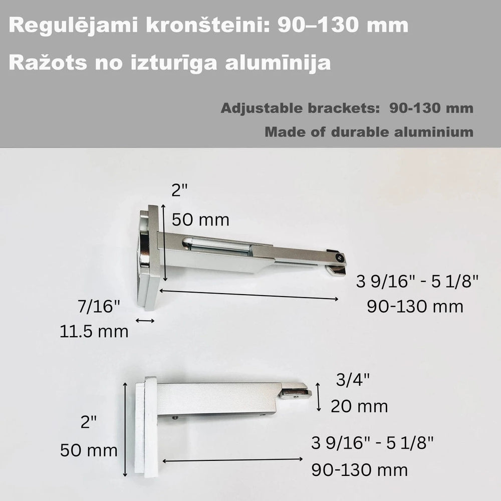 Alumiininen verhotanko, hopea, seinäkiinnitteinen (täydellinen setti)