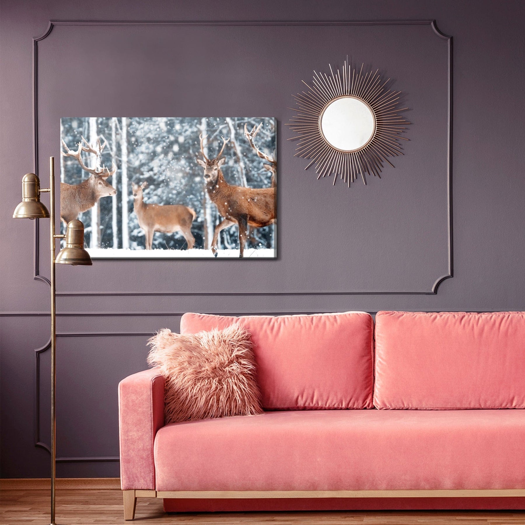 Canvas-taulut - Hirvieläinlauma talvimetsässä, N-1011
