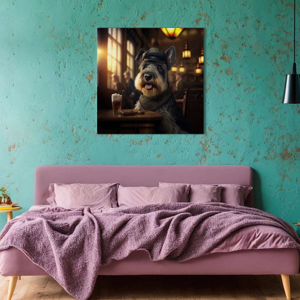 Canvas-taulut - Kääpiösnautseri - koiran muotokuva pubissa oluen kanssa, 150296