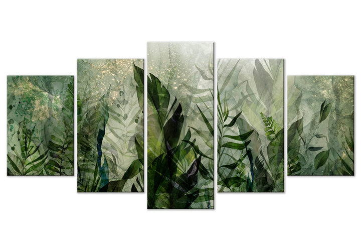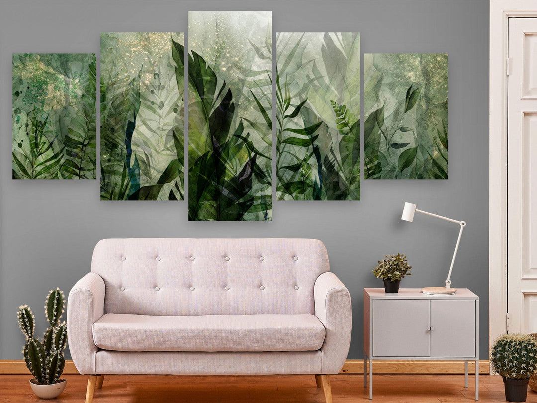 Canvas-taulut - Aamukaste - sommitelma lehtien kanssa vihreällä taustalla, 151423
