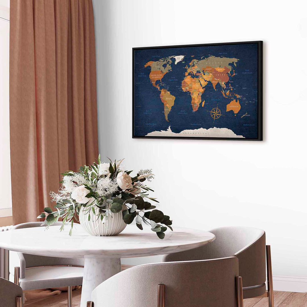 Maalaus mustassa puukehyksessä - Maailmankartta: Pimeä valtameri