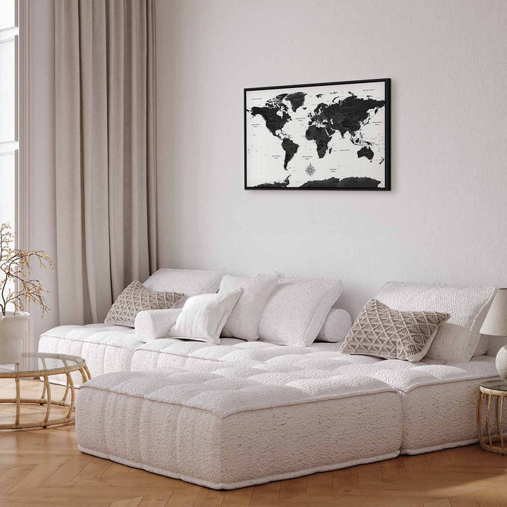 Maalaus mustassa puukehyksessä - Mustavalkoinen kartta