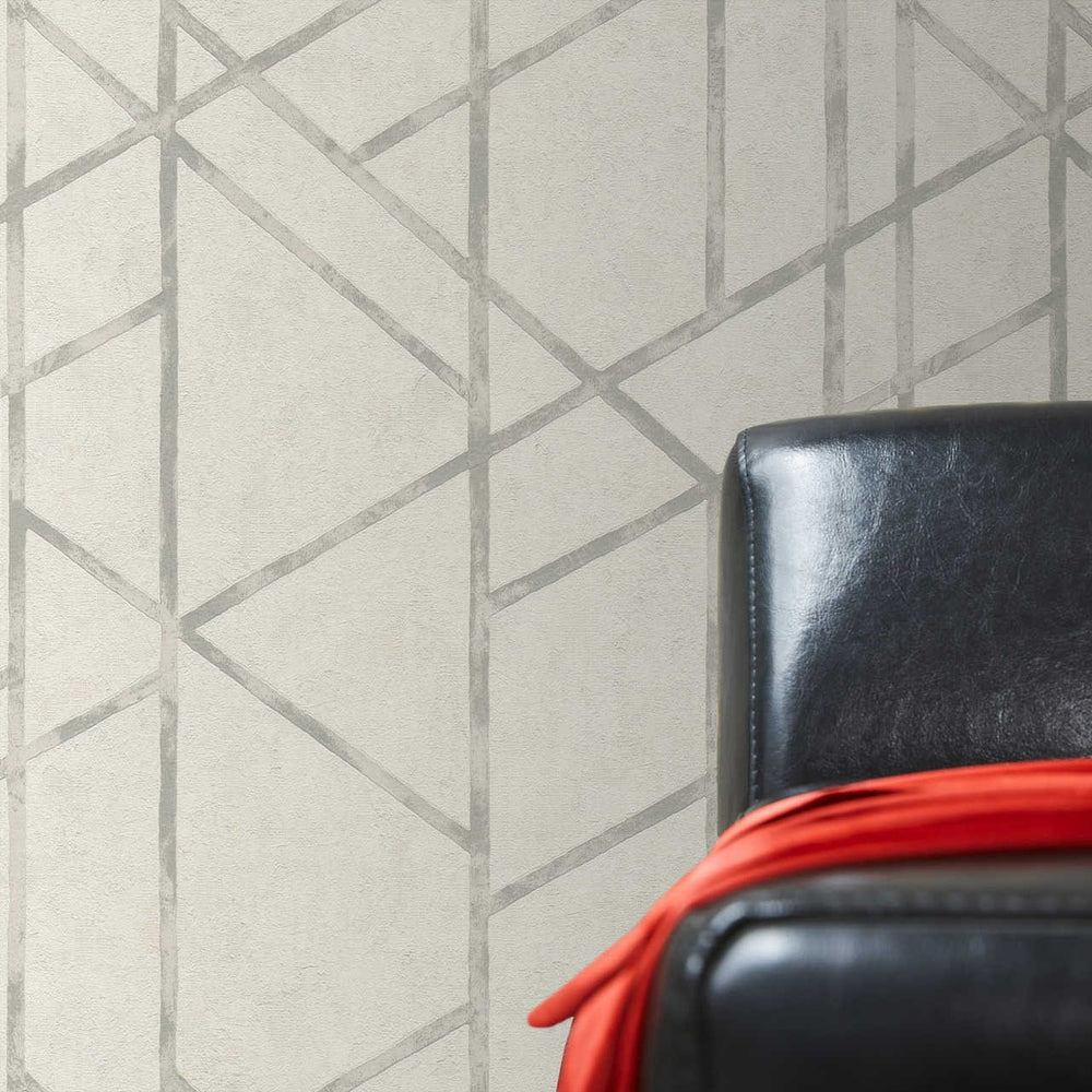 Tapetes istabai ar abstraktu līniju rakstu baltā krāsā, 395631 AS Creation