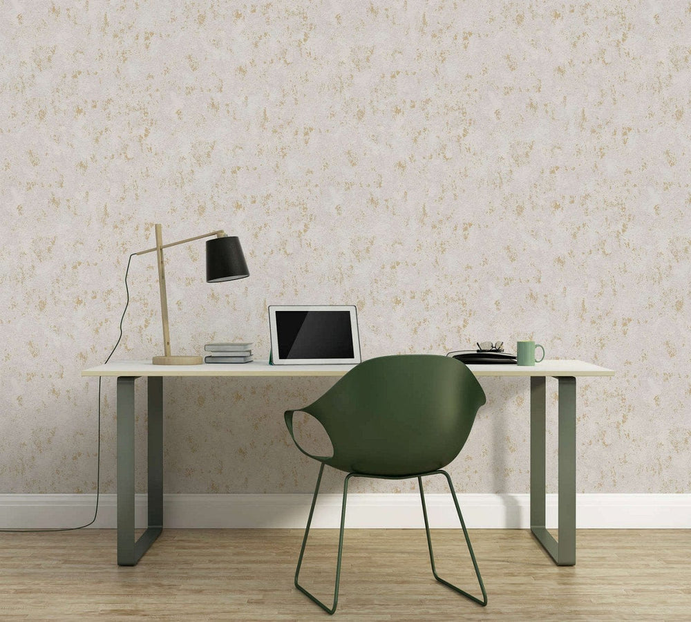 Flizelīna tapetes - apmetums ar zelta akcentiem - silti pelēka, 393871 AS Creation