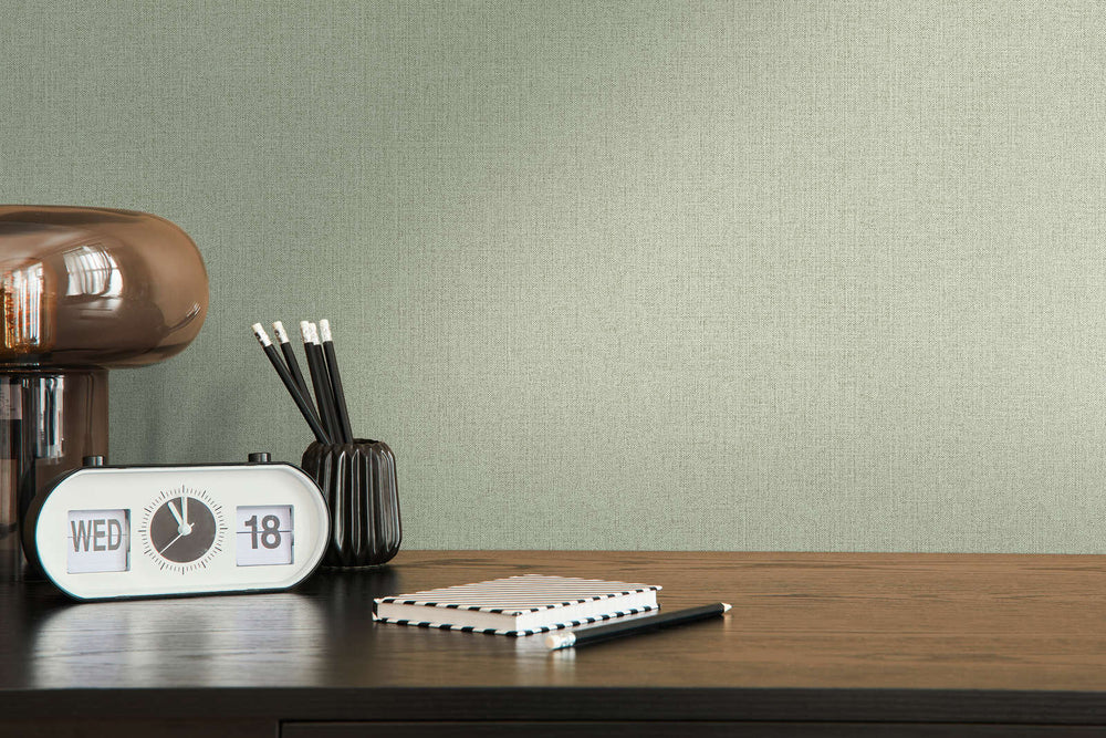 Gaiši zaļas matētas tapetes ar lina tekstūru AS 377488 AS Creation