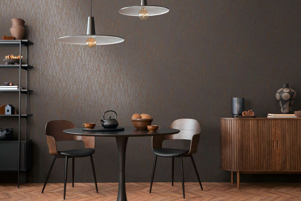 Tapetes ar abstraktu līniju rakstu tumši brūnos toņos, 395634 AS Creation