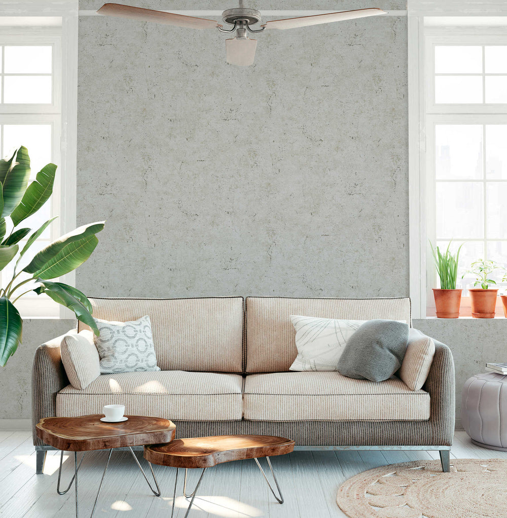Gaiši pelēkas tapetes ar dekoratīva apmetuma imitāciju AS 380893 Tapetenshop.lv