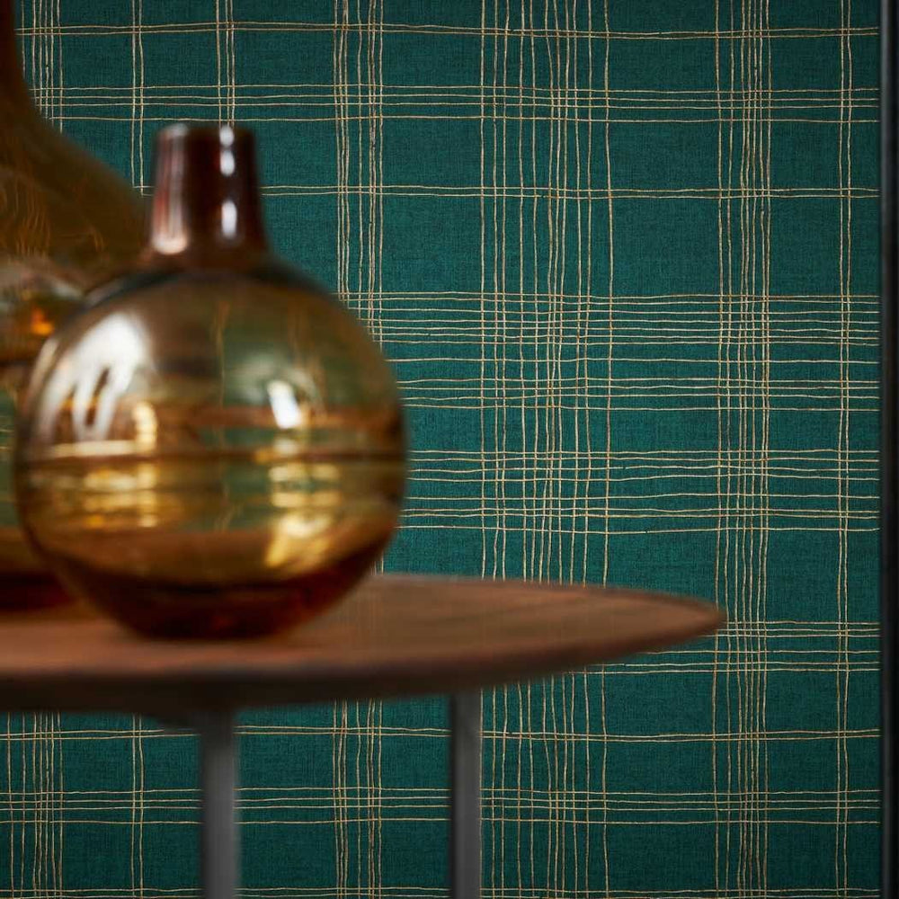 Tapetes ar strīpainu rakstu tumši zaļā krāsā AS 379193 AS Creation