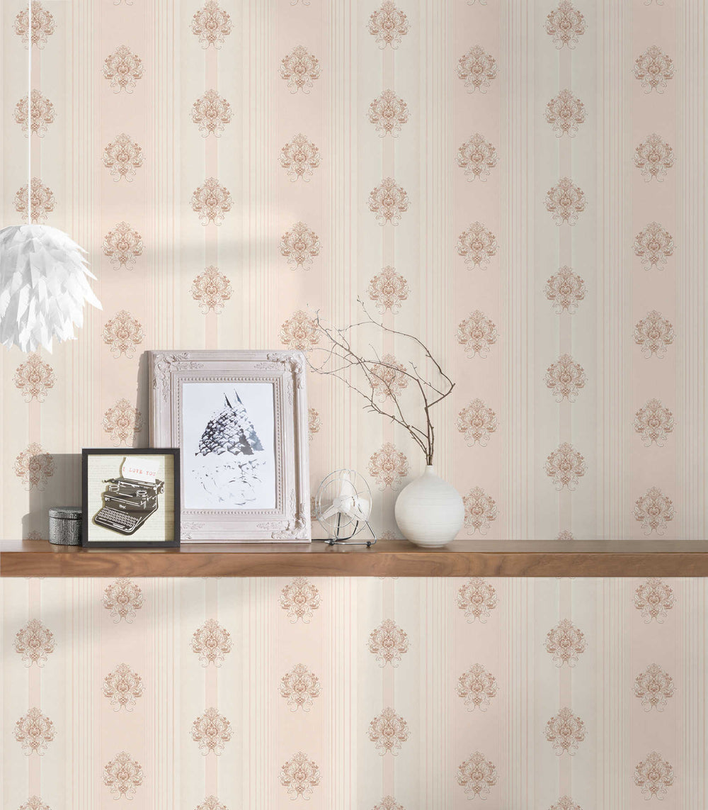 Tapetit ruusukuvio ja lehtien pyörteitä, kerma, 1327024