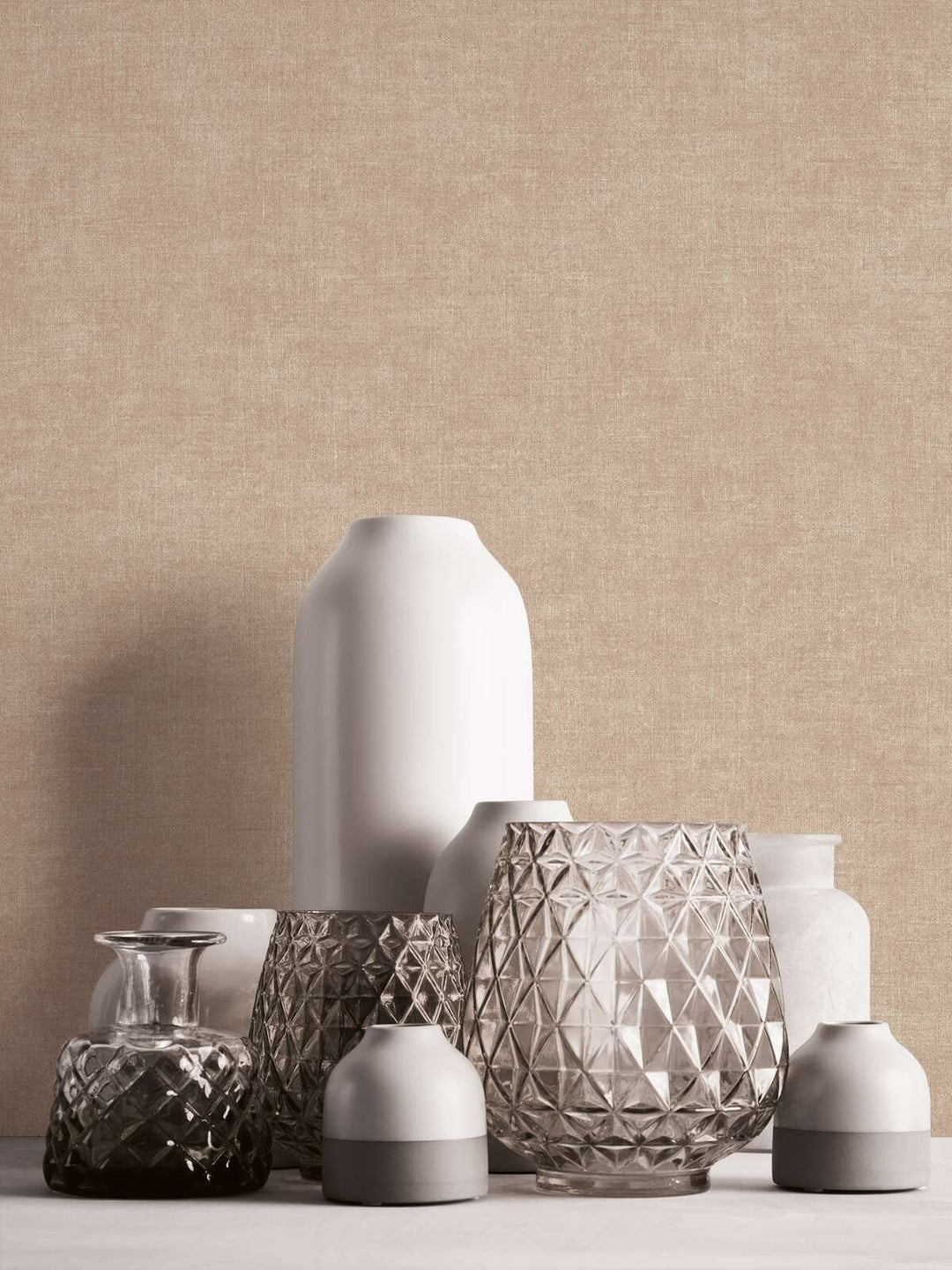 Hiekanvärinen tapetti, jossa on tekstuuria ja mattakuviota - 1315157