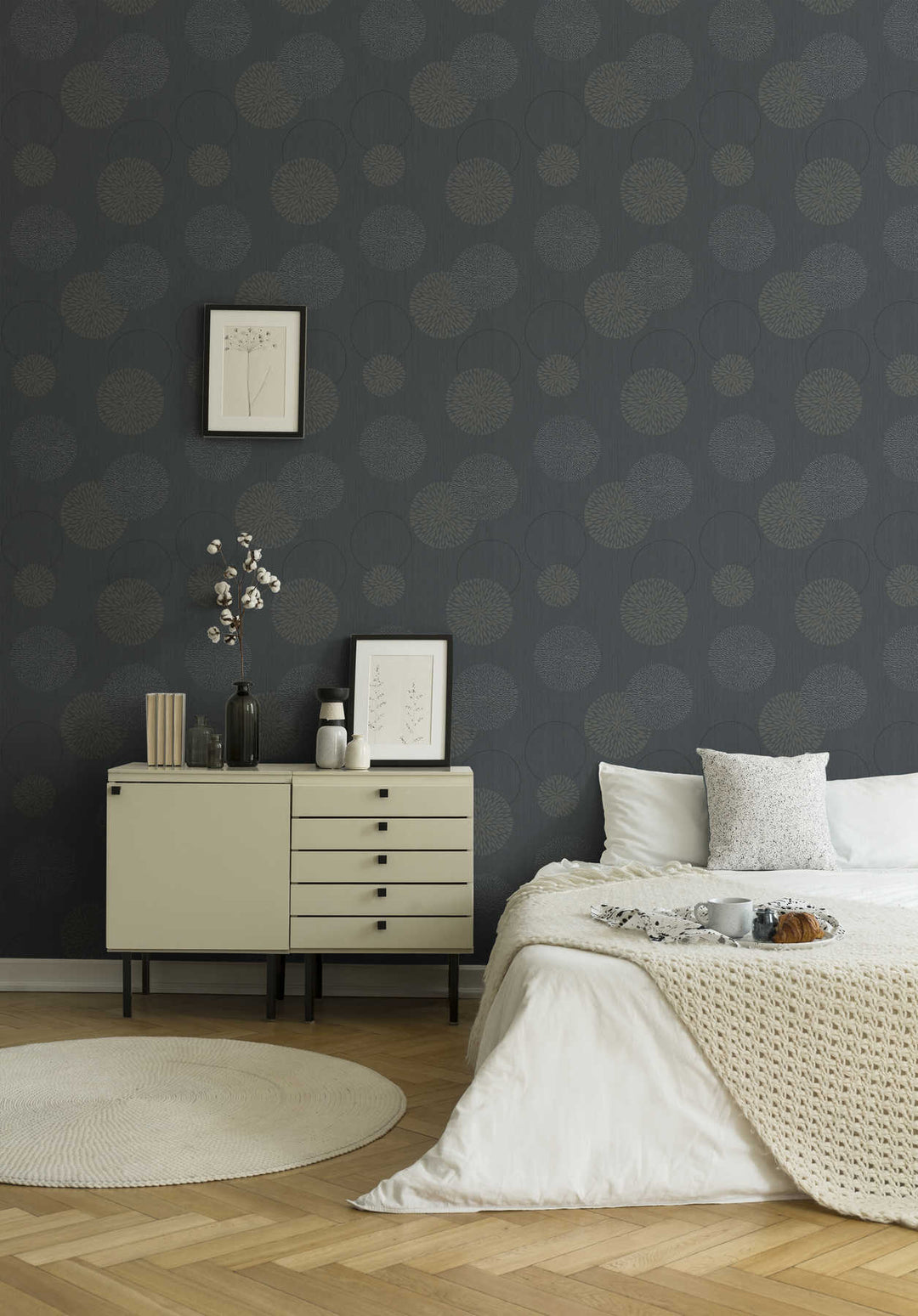 Tapetti abstraktilla kukkakuviolla - musta - 3447667