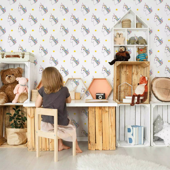 Lastenhuoneen tapetti - Sateenkaaren yksisarvinen, 135084, (0,5x10m)