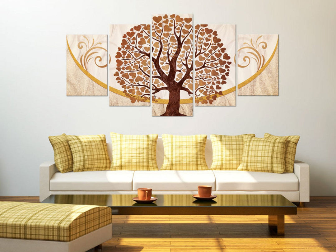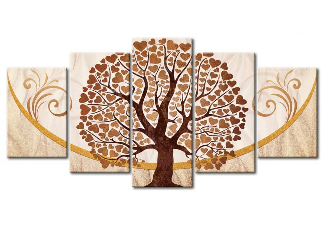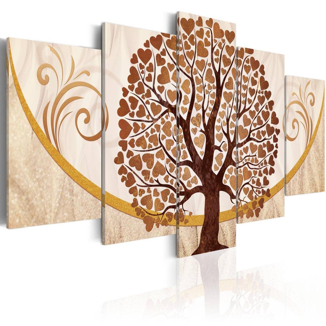 Canvas-taulut tyylitelty puu - Kultainen rakkauden puu, (x5), 66060