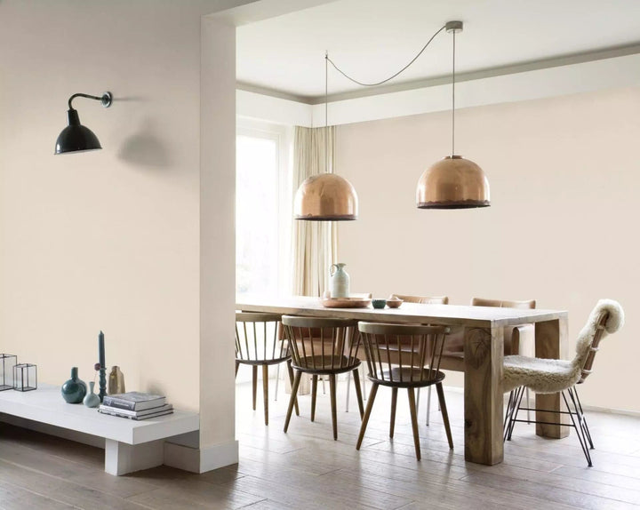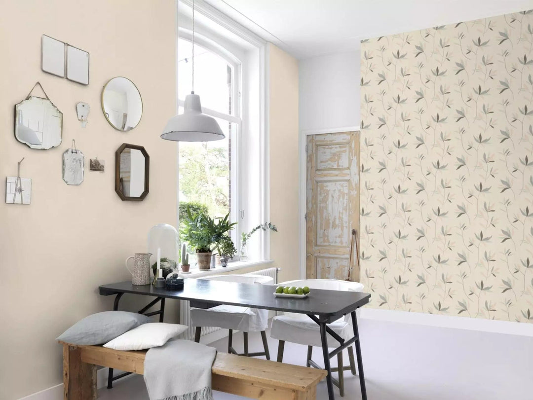 Tämä iloisen värinen kuitukangastapetti elävöittää huonetta ja antaa sille tekstiilitekstuurinsa ansiosta luonnollisen ja kodikkaan ilmeen.