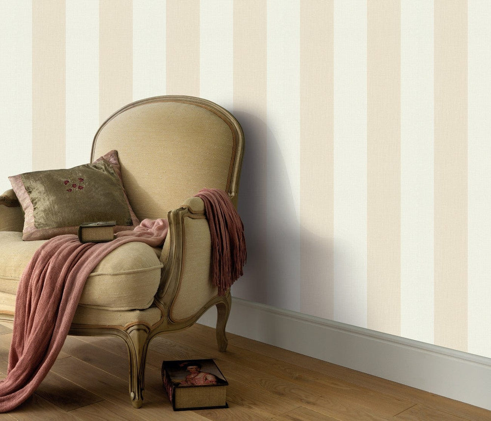 Tapetes ar tekstildizainu un līnijveida efektu bēšā krāsā, 388196 AS Creation