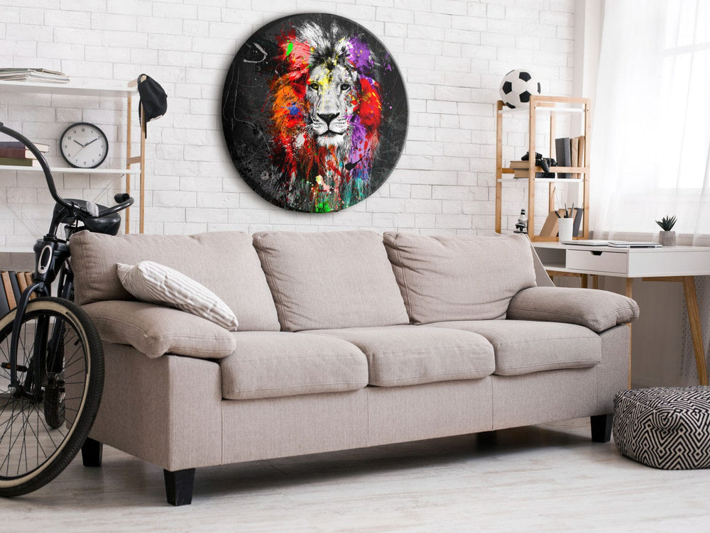 Pyöreä сanvas-taulut (Deluxe) - Kuninkaallinen leijona harmaalla taustalla, 148611