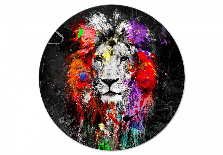 Apaļa glezna (Deluxe) - Karaliskā lauva uz pelēka fona - 148611 G-ART