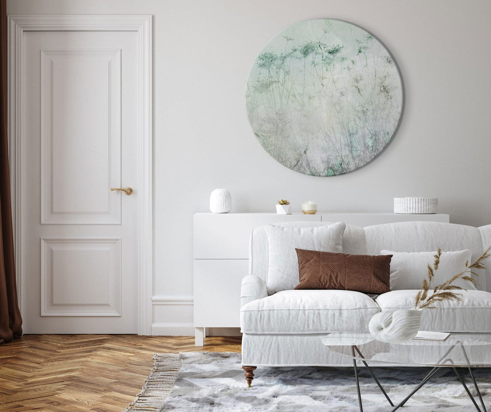 Apaļa glezna ar dabu - Augsta zāle pieklusinātā zaļumā, 148701 G-ART