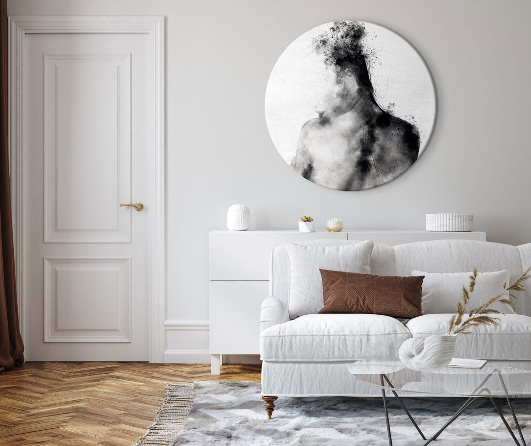 Pyöreä сanvas-taulut (Deluxe) - Mustavalkoinen luonnos naisesta, 148741