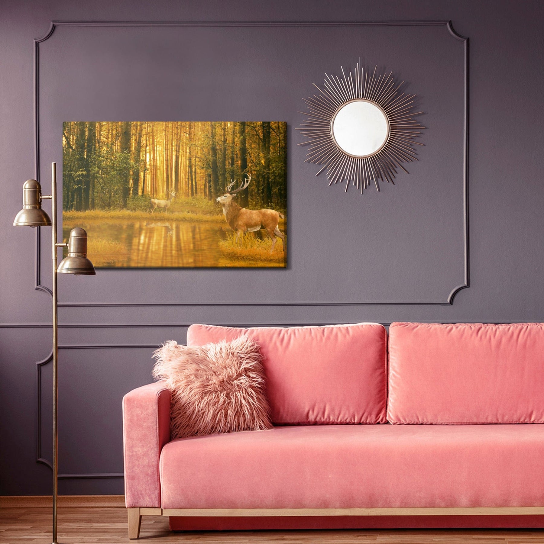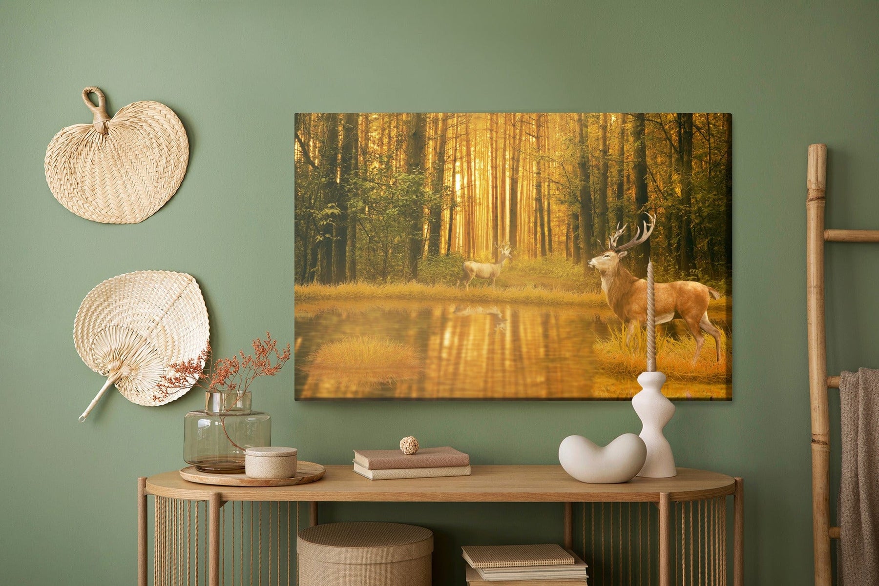 Canvas-taulut - Hirvi järven rannalla metsässä, N-975