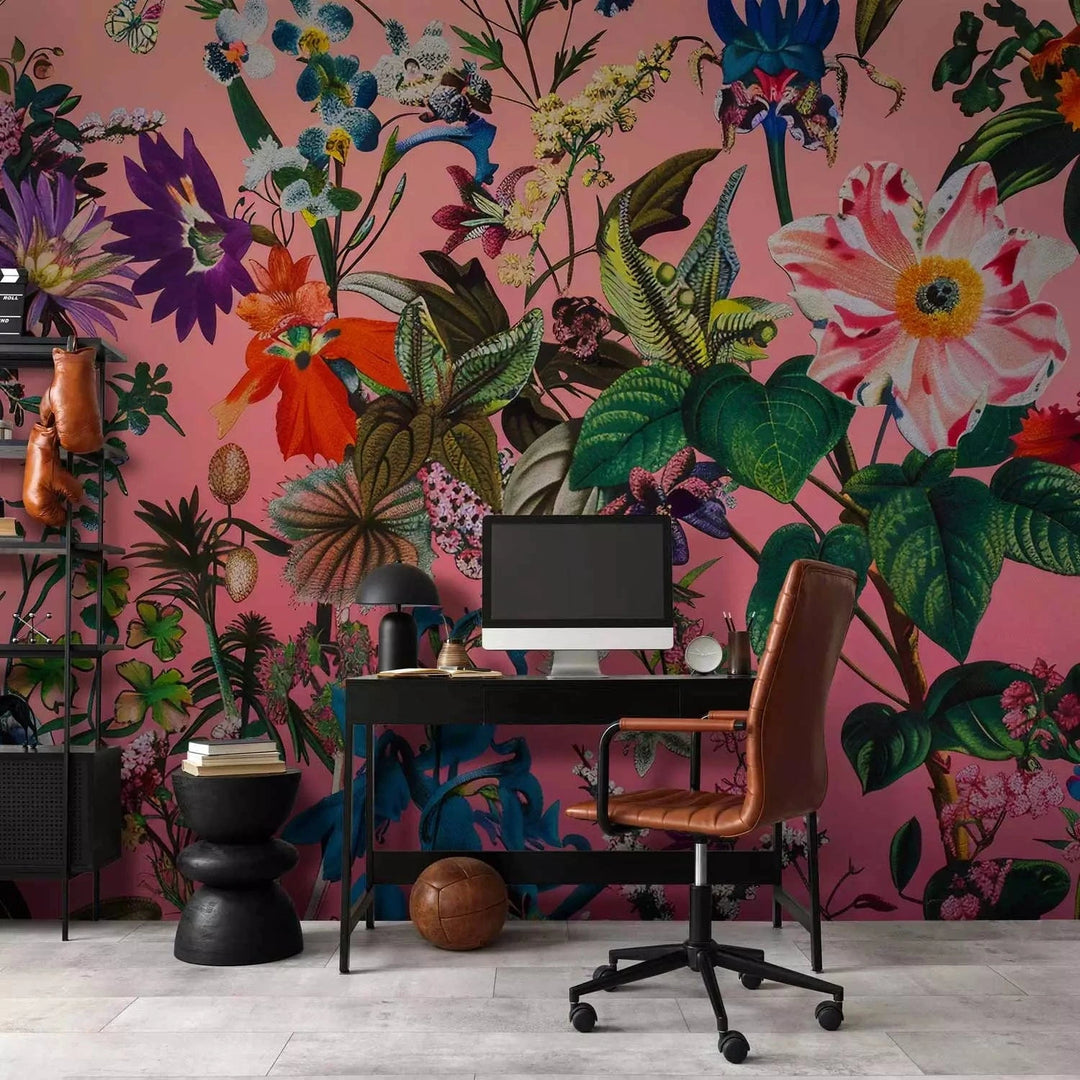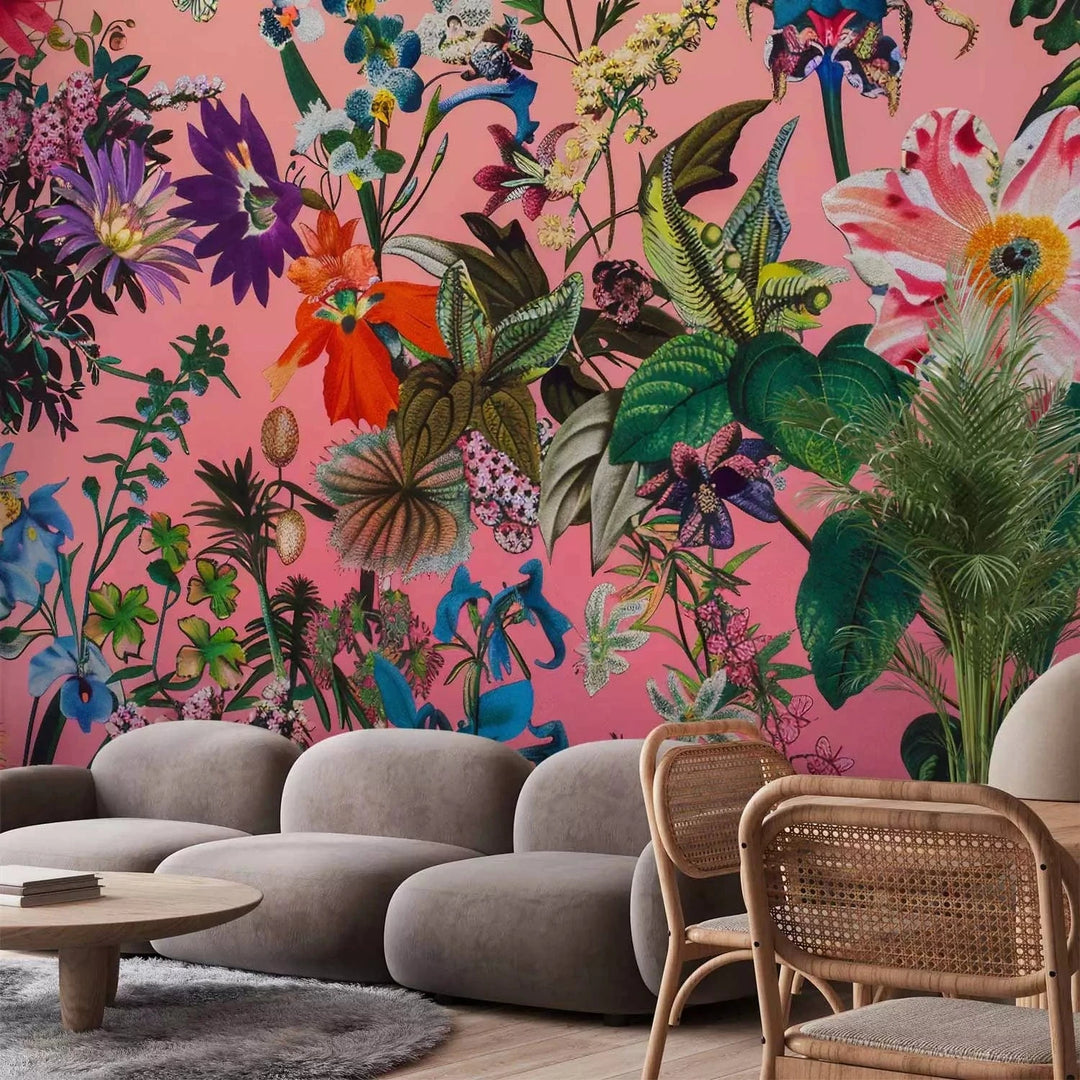 Valokuvatapetti - Eksoottisia kukkia kirkkaan vaaleanpunaisella taustalla, 160406