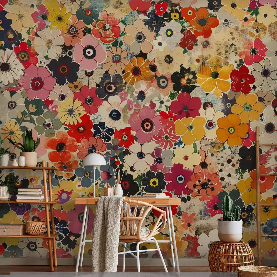 Valokuvatapetti - Kaleidoskooppi värejä - kukka-asetelma kirkkaissa väreissä, 160403
